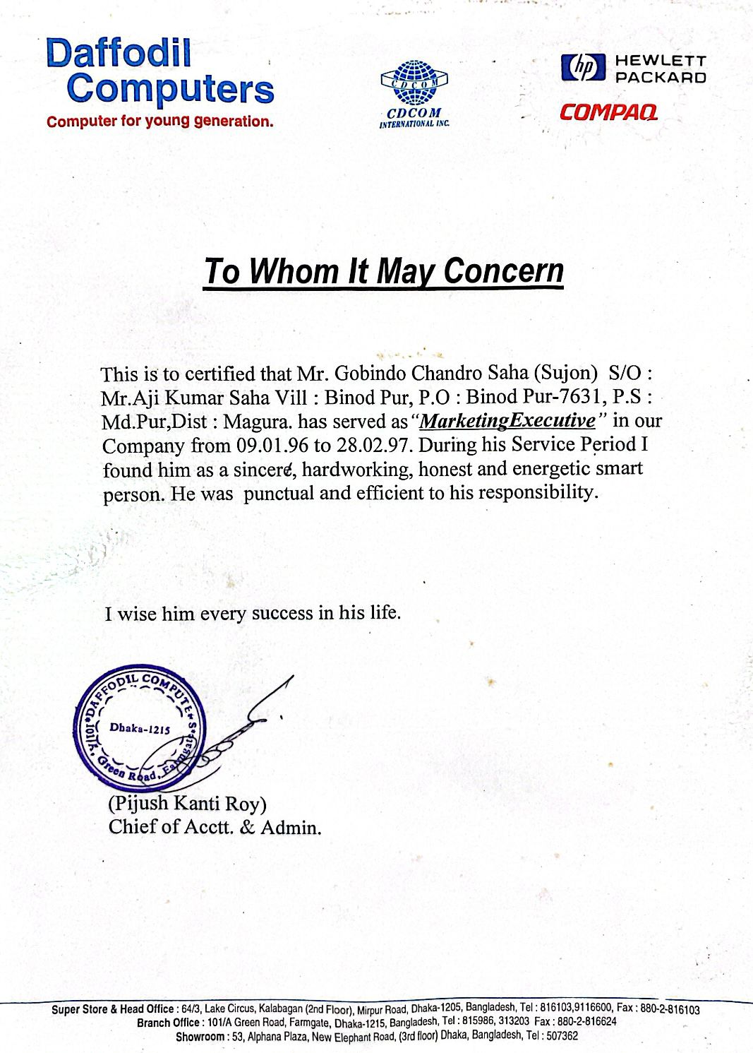 Sujon Saha has worked with reputable companies like Daffodils for 2 years as a Marketing Executive. Certification. He also worked for Navana Computers and Technologies Ltd. for 7 years as a Branch In-Charge. Certification.